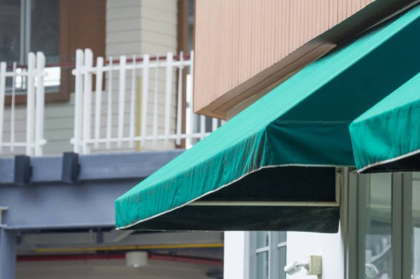 Fabric awnings are popular for their variety of colors and patterns. They are lightweight and can be customized to match your brand. However, they may require regular maintenance to prevent wear and tear.