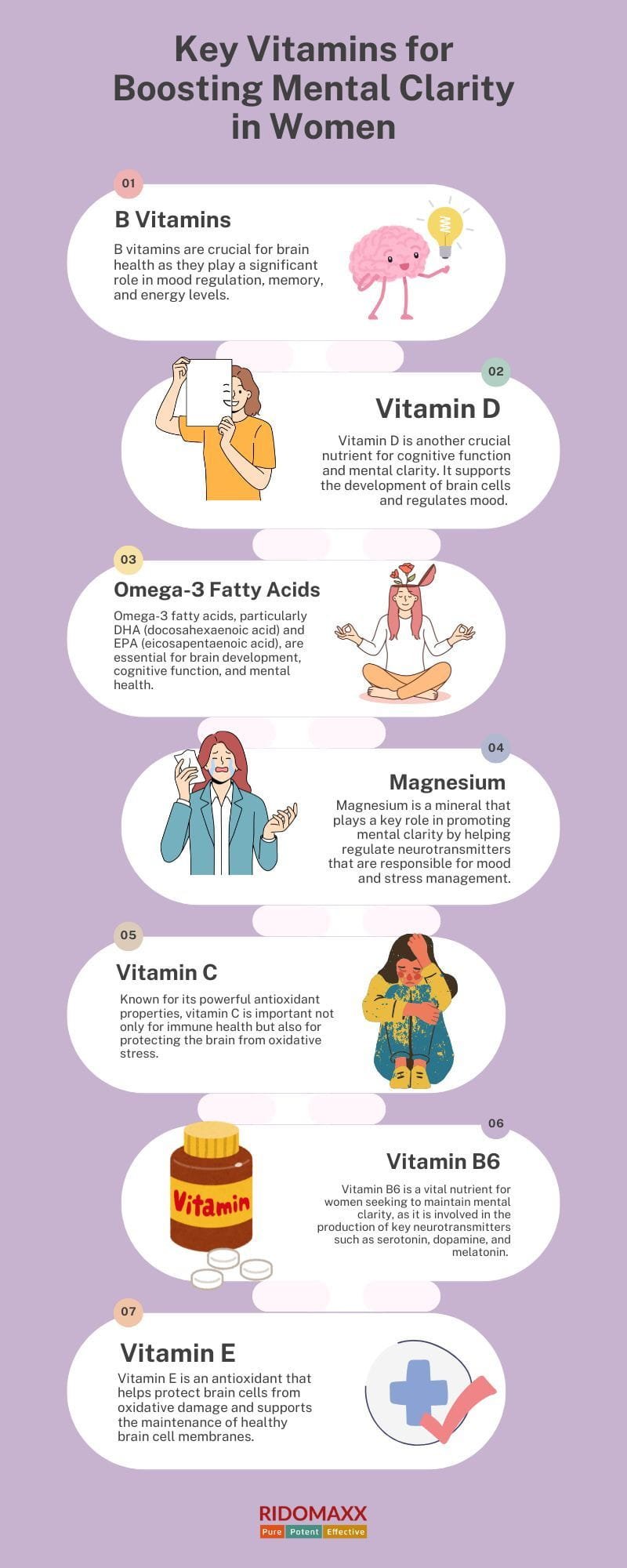 Incorporating the right vitamins into your daily routine is essential for maintaining mental clarity and overall brain health. Key nutrients such as B vitamins, Vitamin D, omega-3 fatty acids, magnesium, and Vitamin E help enhance cognitive function, improve focus, and regulate mood. As women often face unique challenges in balancing various aspects of life, ensuring optimal brain health becomes even more important. By focusing on these crucial vitamins, women can significantly improve their mental clarity and well-being.